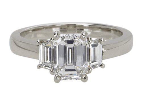 Platinum Emerald and Trapezoid Diamond 3-Stone Ring (GIA Certified 1.52 ct center, 2.09 cttw, H color, VS1 clarity), Size 6 Review