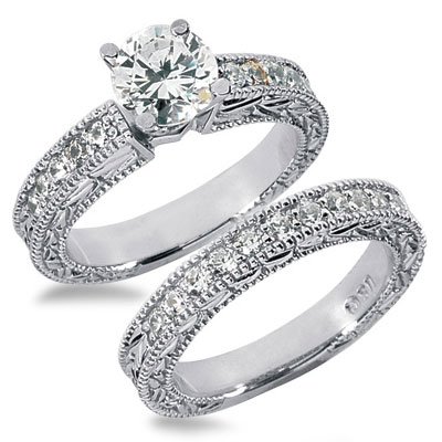 For your favorite beauty! This set includes a solitaire (Center stone is 2.00 Ct G/VS2 Diamond) is set with ten pieces of 3.0 points genuine round and brilliant cut side diamonds and a matching band that shines with eleven pieces of 3.0 points round diamonds totaling 0.63 carats.She can wear them alone or together! ( Diamonds have G in color and VS2 in clarity) This item is manufactured in USA with finest 14k white gold. (For the alternative metal options please contact us)
